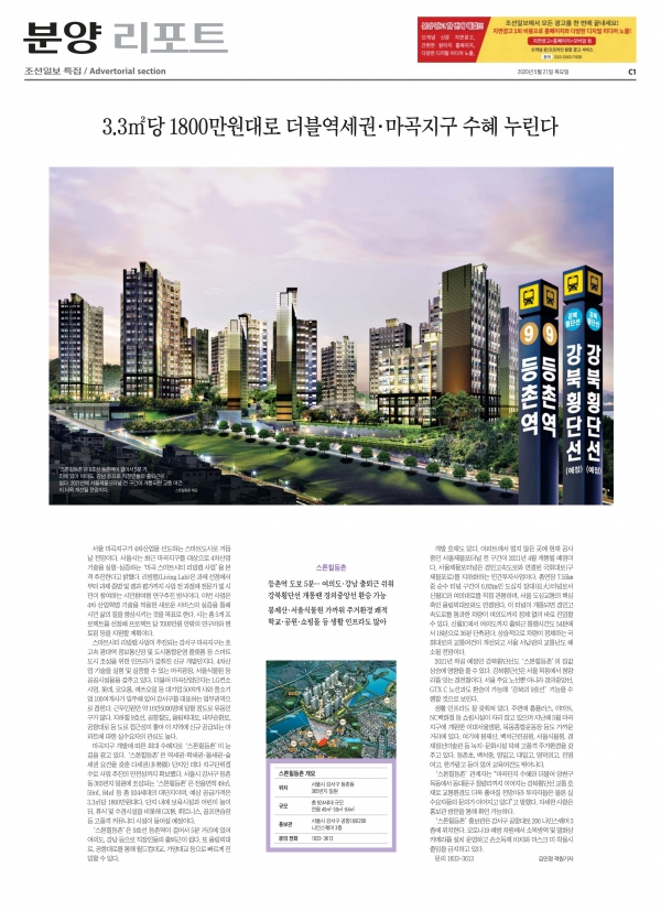 | [조선일보] 3.3㎡당 1800만원대로 더블역세권·마곡지구 누린다 | |